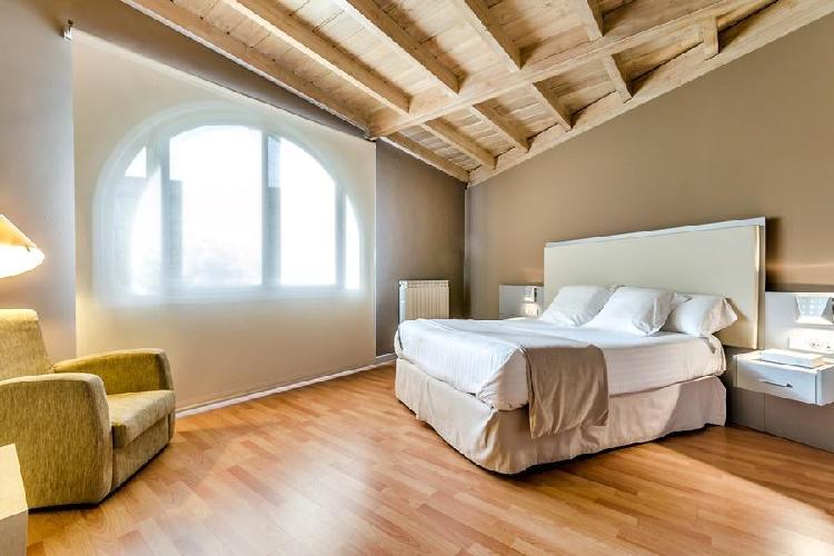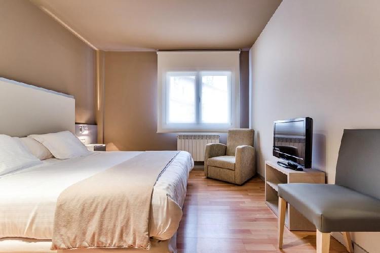 Hotel Nagusi en el País Vasco. Este encantador hotel ofrece unas vistas fantásticas al paisaje natural de los alrededores y está situado en la localidad de Murgia, (País Vasco). Cuenta con bar cafetería, un mostrador de información turística y habitaciones con conexión Wi-Fi gratuita.Las habitaciones del Hotel Nagusi combinan muebles de estilo moderno y rústico y están decoradas con tonos cálidos y tejidos suaves. Las habitaciones están equipadas con TV de pantalla plana y baño privado. El Hotel Nagusi está muy bien ubicado en Álava (País Vasco) a 15 km de Vitoria y a 25 km de Bilbao. También se puede visitar el parque natural de Gorbea. Hay aparcamiento privado gratuito. La habitación ático abuhardillado (2 adultos + 2 niños) consiste en una doble más una sofá cama para los niños. ***Check-in de 14 a 22h.