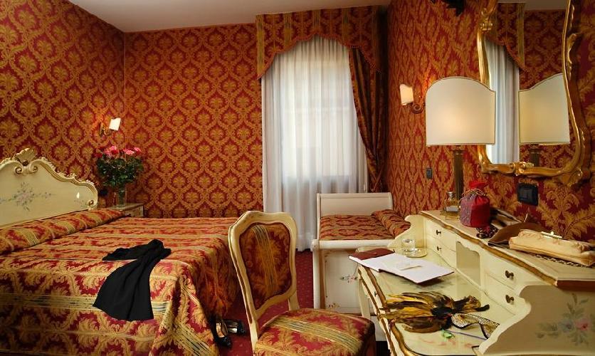 Situado entre la Plaza San Marcos y el puente Rialto en una calle típica veneciana. Casi todas las habitaciones recientemente renovadas disponen de baño privado, teléfono, TV vía satélite, aire acondicionado, minibar... el hotel es completamente para no fumadores. AVISO: en caso de salida anticipada, el hotel facturará el 100% de la estancia. City tax de 3 eur por persona y noche, pago directo en el hotel.